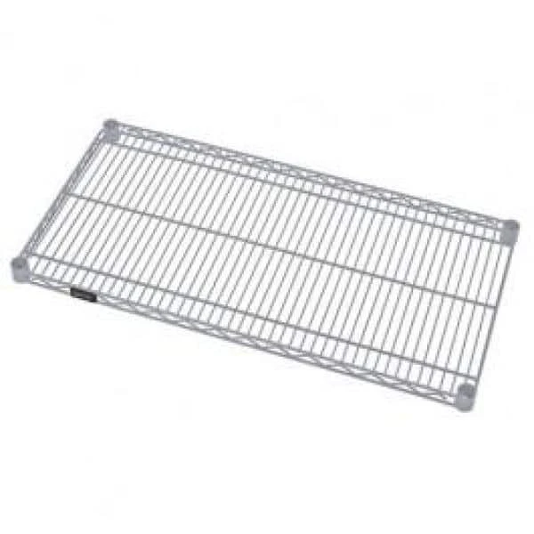 All welded shelf construction is supported with architectural wire trusses to provide between 600 lbs. and 800 lbs. capacity per shelf. Wire allows air to circulate and light to penetrate for increased product visibility. Split conical sleeve adaptors secure shelf corner to posts.